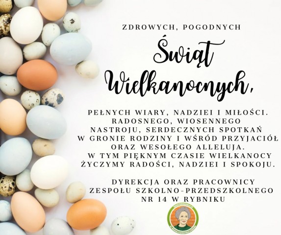 Zdrowych, pogodnych Świąt Wielkanocnych pełnych wiary, nadziei i miłości.